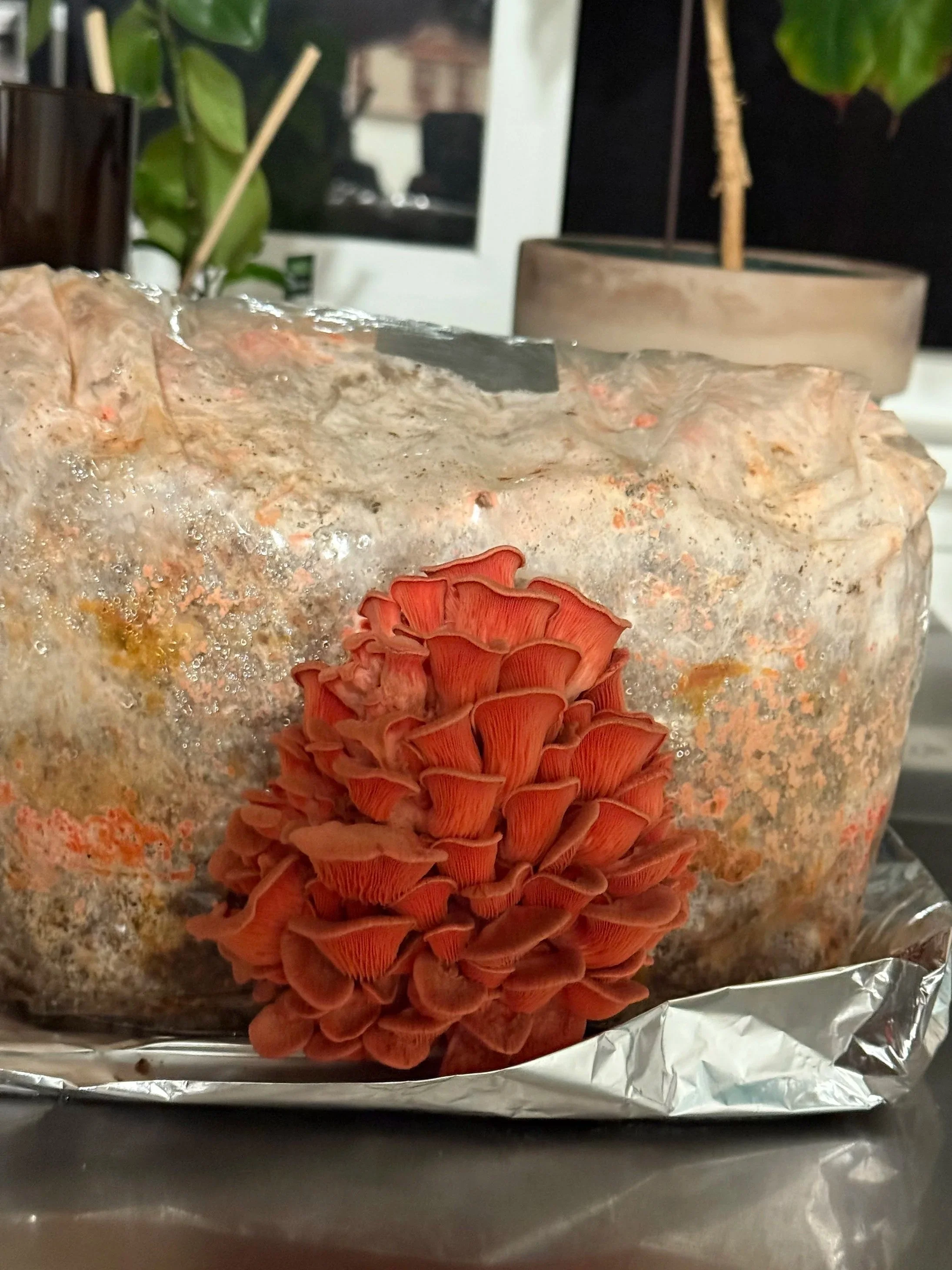 Your fully colonized mushroom block (sealed in a grow bag)